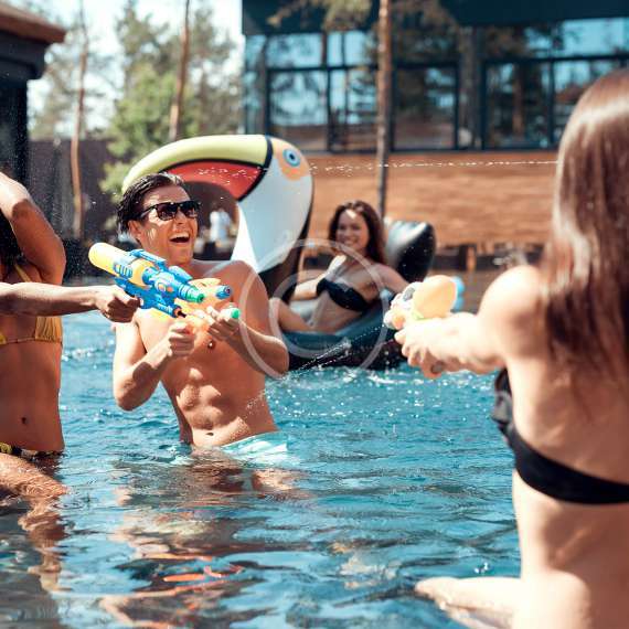Join an amazing pool party with fireworks.